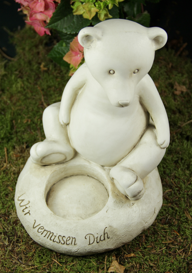 "Bär als Grablichthalter, "Wir vermissen Dich" | Grabschmuck"
