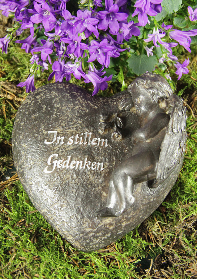 "Engel auf Grabherz liegend | Aufschrift "In stillem Gedenken" | Grabschmuck"
